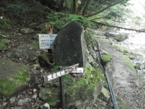 | 天狗岩などが見える | 砂利道から登山道へ | でかくて丸い石 |