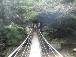 | 橋を渡る | 巨岩の間から水が噴き出ている | またしても橋 |