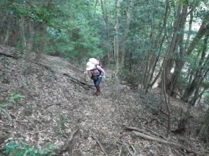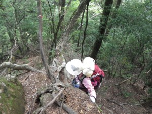 | 最初から急登だ | よじ登る | 私のザック かなり重い |