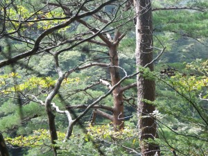 | 松林の素晴らしい尾根 | 木は大きい | 断崖絶壁が広がる |