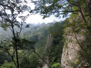 2011年9月23日(金)祝日 天気 晴れ 久しぶりに妻が一泊で山に行ける段取りをしていたので妻の前々からの要望でもあった黒金山尾根を歩くことにした。黒金山尾根と「山と高原地図(昭文社)」には記載されているが、現地の案内表示は黒金尾根となっていた。黒金山らしきピークはないのでどちらが本当なのか、名前の由来は?と疑問が浮かぶ。黒金とは、所謂「鉄」のことで、尾平鉱山では「銀」が採取されたらしいので昔はこの辺りでも鉄が採れれていたのかも知れない。色々と想像するだけで面白い。 ■出発時間: 午前5時半(自宅) ■メンバー: 家内と私の2人 国道10号線から宇佐別府道を経て途中別府SAで休憩し、米良I.Cで降りて再び10号線、そして中九州道の整備区間である犬飼大野道を経て大野I.Cで降りて南に向かい地方道410号の細い道を尾平へと走り、「もみ志や旅館」を右に見るとすぐに右手に有料駐車場がある。お金は、旅館に支払うのだが、管理人が駐車している車のワイパーに集金袋を置くのでそれにお金を入れて回収BOXに投函することになっている。9時20分、駐車場は、ほぼ満杯で1組だけ登山準備をしていた。私たちも一足遅れて出発だ。駐車場の奥に登山届のある登山口である。入り込むとすぐに目の前が開け、祖母山と障子岳までの荒々しい稜線が目に飛び込む。左手にはトイレがあるが使用禁止となっていた。幅の広い砂利道はすぐに終わり、川上渓谷沿いの登山道となる。橋が見えると宮原コースとの分岐だ。そのまま橋の下を渓谷沿いに歩く。渓谷はつるつるした薄茶色の岩がスラブのように続くナメ床である。ところどころに大きな丸くなった岩も面白い。右岸をしばらく歩くが橋を渡って左岸に渡る。すぐにまた支流を渡る橋がある。小さな沢を横断し、尾根に取り付いたと思ったら再び沢を見る。崩れた木の橋を見て沢を横断すると川上渓谷との分岐標識があっていよいよ尾根に取り付く。最初から結構厳しい上りが続く。ザックの重さがここにきて堪える。ヤセ尾根に出ると大きな松の木が見事である。断崖絶壁を左に見ながら高度を上げる。標高900mの表示からは100mごとに標識があり、その度に休憩をする。とにかくきつい。標高1100m辺りからはスズタケが多くなる。1200mの標識がある場所は休憩ポイントにはちょうど良い場所だ。栂(つが)原生林と書かれている。標高1400mの標識を過ぎ、天狗の水場に着く。水量はほとんどない。すぐに天狗の岩場に出る。なるほどいざというときはビバークできそうだ。標高1500mを過ぎると大きな岩がごろごろしていて歩きづらい。ここを一気に登ると左手に天狗岩が見えてきた。稜線に出ると分岐標識がある。時計を見ると13時54分だ。予想以上に時間がかかり、この調子で行くとテント場につくのは17時頃になるのではと少々心配だが、天狗岩に立ち寄ることに。 ページへ |