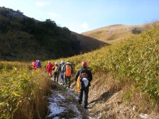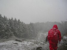 2006年12月17日 天気 雪 今日は足立山のYさんの企画で平尾台探検登山(登山教室)ということで塔ケ峰のヤブコギの予定だった。 しかし、前日の天気予報では朝から雨模様だ。それでYさんは、雨天のことを考慮し、別のプランをたてていた。さすが・・・・ 今回は登山教室ということでコンパスと地図を頼りに茶ケ床園地から3〜4人でパーティを組み、等覚寺で合流するという企画だ。 等覚寺は行ったことがないため地図を見ながらの歩きとなった。水晶山までは行ったことがあるが、今回は行った事がない人が先頭になって任せるという怖いゲームである。 と言いながらうきうきと歩いていると雨が雪になり、風が強くなり、吹雪となった。地図は防水カバーをしていなかったため濡れてぼろぼろになり、落ち着いて見ることもできない。 水晶山までは、雪のためか結構距離があったような気がする。雪はみるみる積もり、歩きづらくなる。水晶山から等覚寺への道がわからない。地図をみても位置の確認だけである。しかし、道があるはずなのでずるいが道標を捜す。ふと見ると木の表示が雪で隠れているではないか・・・・・・方角はわかったのだが、急な下りだ。しかたないので滑りながら下る。下りきるとすぐに十字路があるが、行きたい方向は通行止めなのか枯れ木でふさいでいる。ともう少し進むがどうやらこの先には道がなさそうである。再び戻り、竹林の中を行く。そうこうしているうちに舗装された道路に出た。等覚寺はすぐにあった。待ち合わせ場所を聞き違えていたようでこの段階では青龍窟まで行くものと思っていた。しかし、もう一つのパーティがいて合流し、Yさんからの連絡で白山神社で待つことにした。白山神社からは全員で青龍窟に向かい、食事は洞窟の中でキャップライトを点けて食べた。変な感じだ。 洞窟探検をして広谷湿原に出た。外は晴天になっていた。湿原を気持ちよく歩き、スタート地点の茶ケ床園地に着く。 あまりコンパスや地図をうまく活用できなかったが、なければ方角さえもわからなかった。 平尾台もまだまだ知らないところがあった。 |