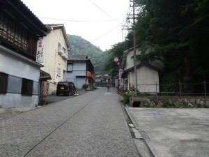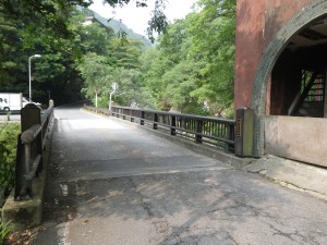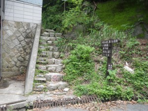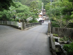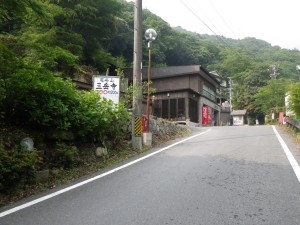 | 再び橋を渡る(翠明橋) | 裏登山口とある | 古い建物の横を通過 |