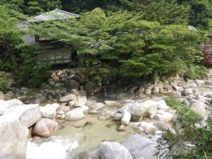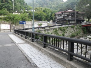 | 温泉街を歩く | ロープウェイの入口 | 川を横断 |