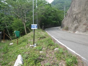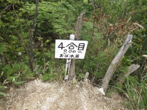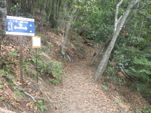 | 中登山道登山口 | ここまで一緒に歩いた方とお別れ | 登山届けがある(左は表登山道へ、ここは真っ直ぐ) |