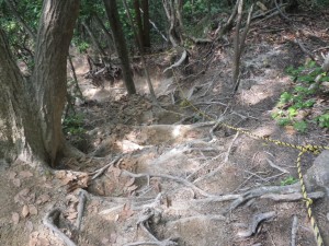 | 根が浮き出て可愛そうだ | ここもザレ道 | 3合目の道標 |