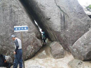 | 4合目におばれ岩 | 平たい | 隙間をくぐる山ガール |