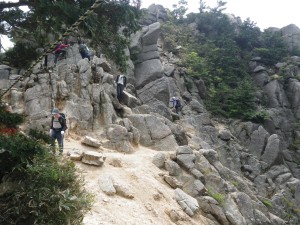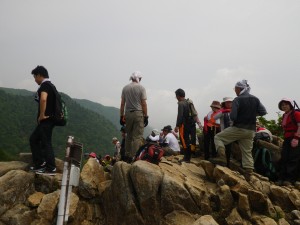 | 巨岩のヤセ尾根のようだ | 左が切れている | すごい人、六合目900mキレット |