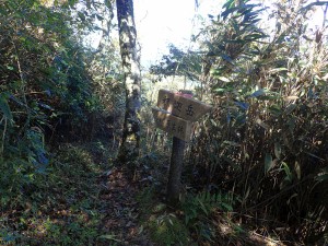 | 三本杉と呼んでも良いと思うが・・・・ | 田代岩屋への道標(12:01) | 自然研究路ともある |