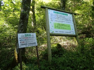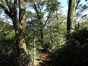 | まともな道になる | 歩きやすい登山道になる | シオジ原生林についての説明板 |