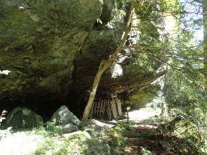 | 階段を真っすぐに急登する | 大きな杉の木がある | 田代岩屋(12:05) |