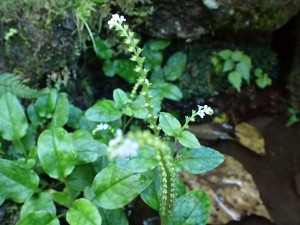 | ▲珍しい白花のハガクレツリフネ(葉隠釣舟)・・・花はとても小さい | ||