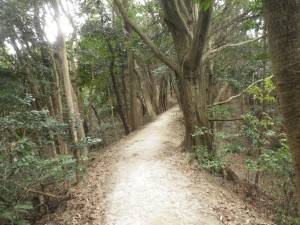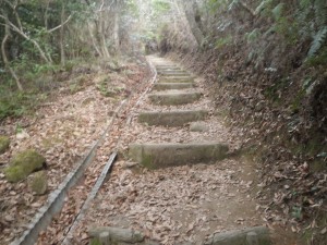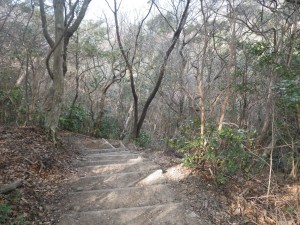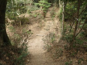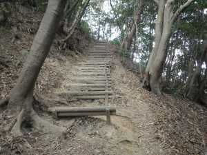 | 割と大きな木もある | 急斜面の階段 | 登りくると平坦に |