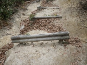 | 丸山展望所 | 障害物となった丸太の階段 | 歩きにくい石段 |