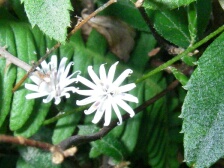 2007/10/21 天気 晴れ 遊山歩今月2回目の山はMORIさんの発案で秋晴れの中、英彦山の障子ケ岳に行くことになった。今回は新しいメンバーも山口県防府から参加となり、賑やかな山行となった。午前9時30分彦山駅に集合、深倉園地の駐車場に車を停め出発だ。 <アクセス> 地方道52号線のJR彦山駅を通過し、小石原方面へ右折、橋を渡る。1Kmほど行くと道が2つに分かれる。左手、深倉川沿い(岩屋方面)に行くとさらに左手に「深倉園地」の標識があるので左折し、踏切を渡り、T字路を右折する。山道ではあるが、きれいに舗装された道を数キロ行くと大きなしめ縄が見えてきて駐車場がある。 <今回のコース> 深倉園地の駐車場より舗装道をみちなりに歩きます。(車両は途中で通行止めです)深倉川を右手にして歩くと途中から舗装がなくなり、川からも離れて行きます。再び舗装道になり、しばらく歩くと左手に「障子ケ岳」の標識が現れます。駐車場から約50分です。 ここより本格的な登山道となります。尾根道は直登なのでかなり急です。20分ほど喘ぐと平坦な道となり、一旦下ります。上り返すと障子ケ岳山頂です。標識には948mとあります。さらに奥に20分程度進むともう一つのピークがあります。ここにも「障子ケ岳」896mの標識があります。地形図をみると948m地点に「障子ケ岳」と記載されてはいますがもうひとつのピークには896.0とあります。障子ケ岳の三角点は896.0mのところだということでしょう。必ずしも高いほうに三角点があるということではないということです。今回はここでUターンし、途中、昼食を済ませ、往路を帰りました。 <コースタイム> 駐車場−(50分)−登山口−(30分)−948mピーク−(20分)−896.0mピーク−(20分)−948mピーク−(20分)−登山口−(50分)−駐車場 休憩を入れて約4時間のコースです。 ※時間はあくまでも参考に・・・・ <感想> 障子ケ岳の山頂は展望はありません。また三角点のあるところも檜木林に覆われ、薄暗いです。しかし、この2つのピークの間で英彦山が時々顔を覗かせたり、巨岩があったりで変化を楽しむことができました。それと初めて見た花がキッコウハグマと聞き、驚きです。名前はさこちゃんが教えてくれました。 初めて参加のメンバーと珍しい花に出会えたりで楽しい1日でした。帰りに道の駅で反省会をして帰宅しました。キッコウハグマ・・・シューザ左衛門さん撮影 |