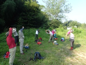 | 駐車場で準備体操(8:25) | ||
