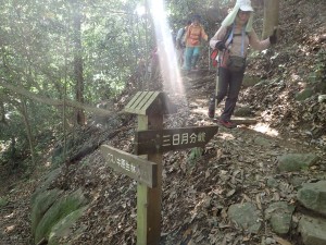 | 快適な登山道 | 樹木が大きい | 三日月山にて(9:22) |