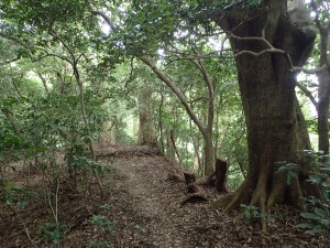 | 往路を戻りここからクスノキ原生林へ | ヒェ〜 | 枝もデカイ |