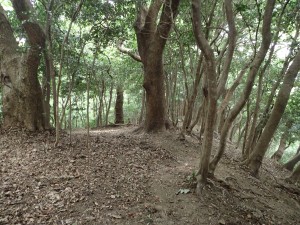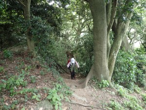 | 再び登り | 松尾山頂上(11:16) | 樹の間からのわずかな展望 |