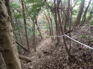 | 三高山頂上にて(10:28) | 往路を戻る | 新しいロープが設置されている |
