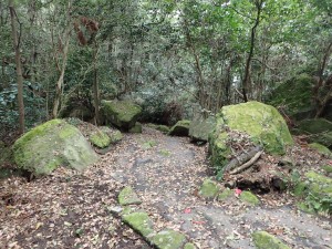 | 巨石群、道が舗装されている | 法華経ケ峰へ | ここをくぐる |