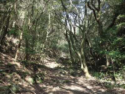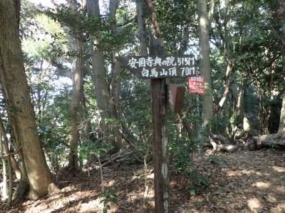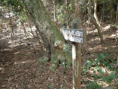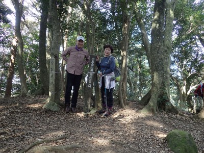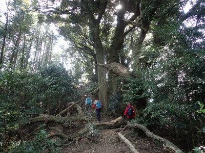 梅の観賞を終え、登山道に入る。巨木が多いのはお寺さんが守ってくれたからだそうだ。奥の院を過ぎた辺りで女の子二人の若いハイカーに追い越される。声をかけると北九州から来たとのこと。谷間から尾根に出て少し行くと白馬山。読みは「はくばさん」とのこと。なかなか九州にない山名だ。