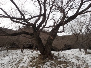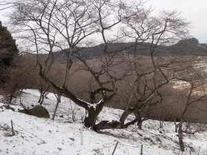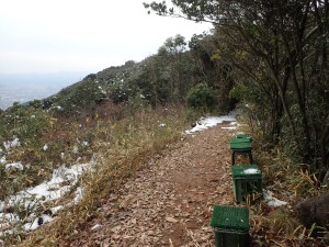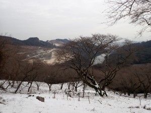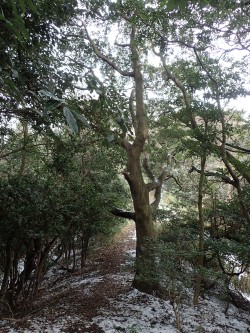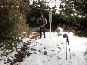 平成30年1月14日(日)天気 曇りのち晴れ ■出発時間:9時00分頃 自宅 ■メンバー:単独 平尾台に連なる一番東に位置した高城山(たかじょうやま)は、我が家からも近い。400mちょっとと低山ではあるが、地元の人には人気のようでコースがたくさん用意されている 高城山の千本桜は、よく耳にしていたので桜の季節に歩くのがベストなのだろうが、その前にどんなところなのか一度歩いてみることにした。ということで実は初めての山だ。 このところの寒気で降雪したが、今日は青空が広がりそうだ。心配していた道路凍結はなく、準備したチェーンは使わなくて済んだ。と言うかチェーンを装着するのが面倒なので凍結していたらUターンして帰宅していたかもしれない。 南原(みなみばる)登山口の駐車場は私の車1台。ちょっと意外だった。登山口からすぐに千本桜の場所に。植樹した桜の樹に混じって樹齢200年のヤマザクラが堂々と枝を広げていた。「これは花が満開になった姿を目にしなければ」と心の声。 雪が溶けかけてシャーベット状になった登山道は、滑りやすく、さらに樹の枝にできた雪玉が溶けて頭上に落ちてくるので静かな登山道ものんびりとはゆかない。 高城山頂上は、結構雪が積もっていて靴で踏み込むと気持ち良いが、後の人のことも考え少し遠慮して踏みまわった。(結局、他の登山者には出会うことがなかったが) 展望は、東に行橋の街並みと西側は雪化粧した平尾台の峰々が見えた。 ここから諌山、大久保山、大平山へと縦走する。途中の鉄塔下は、眺めが良く、イスなどもあって休憩にはもってこいだ。大久保山の先に「ストーンサークル・・・」とあって巨石群が現れる。足元が悪いので次回ゆっくり散策することにしてひとまず大平山まで進む。 大平山からは折り返して鉄塔のある休憩場所で昼食をとることにした。 ベンチ代わりの瓶ケースの上には人工芝?が貼っていてその上にシートを敷くとなかなかの座り心地。カップ麺にお湯を注ぎじっと待つ。静寂な時が流れる。 と、その時だった、何かいる。目だけ左下にやると確かに何かいる。と思ったら何か動いた「わーっ!」と声を出すとその何かは、足元から反対側のカヤの中に転げるように走り去っていった。こっちもびっくりしたが、相手もびっくりしたようだ。目にした生き物は、黄金色のきれいな毛をしていた。おそらくイタチかテンであろう。 登山者には一人も出会わなかったが、思わぬ出会いがあって面白い山歩きとなった。 帰路は往路を戻るが、再度千本桜をゆっくりと眺める。植樹は昭和60年とあるので約33年前と言うことになる。ぜひ、開花の時期に来よう。 駐車場に戻るとやはり車は私の1台だけであった。今日も山に自然に地元の人に感謝! ■コースタイム 南原登山口P-(40分)-高城山-(20分)-諌山-(12分)-大久保山-(20分)-大平山-(22分)-大久保山-(20分)−鉄塔展望所-(6分)-諌山-(17分)-高城山-(30分)-南原登山口P ※全行程で約3.5時間、距離5.24km、標高差254m |