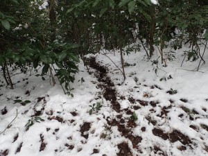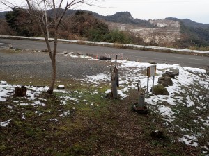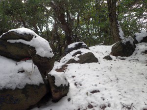 | 高城山系ストーンサークル・ツインタワーストーン」とある | ツインタワーってこの2つかな? | 笹が雪の重みで倒れている |