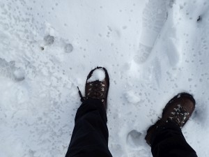 | 雪玉が付いているのわかる? | 奥に竜ヶ鼻、手前は塔ヶ峰 | 降りはもっと滑る |