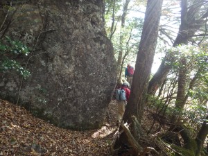 | きれいな樹林帯 | 巨岩の横を通る | いよいよ一番の難所 |