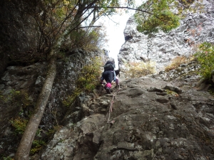 | 露出した根が痛々しい | 岩壁を登る | 眺めが良い |