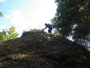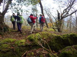 | 昨日の雨でズルズル滑る | 天狗の舞台でランチタイム(11:30) -(12:00) | 苔だらけ |