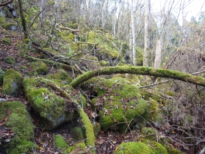 | 石仏に見えた石に触れる | 常緑樹が多くなる | |