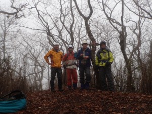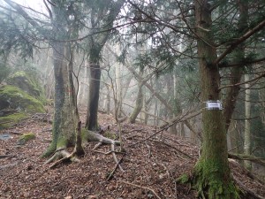 平成28年12月4日(日)天気雨 ■出発時間:午前7時00分(自宅) 集合場所7:30 H氏宅 ■メンバー:Hさん、チューさん、Yさんとカラスの4名 昨日はあんなに晴天だったのに・・・・「雨男は誰?」とこの雨を誰かのせいにしないと気が済まない自分たちである。 それでも中止しようと勇気(度胸?)をもって言う人もいない。いや、もしかして登山口に着く頃には天気予報に反して青空が広がるかもしれない。などとほとんどあり得ない期待をして途中の赤村物産館に立ち寄る。 薬師峠に着くと小さな雨粒がポツポツと落ちてくるが、登山準備するには問題ない。 それでも雨雲レーダを見るとしばらくして強い雨が降りそうなので全員雨具を着て出発となる。登山口から一ノ岳へ急登する。ガスって視界は効かない。 二ノ岳を目指すが、やはり巻き道を行こう。巻き道を歩くのは今回初めてである。 途中、少し道を悩んだが、三ノ岳の真下を無事通過した。雨が降り出したので残念ながら登頂は断念。このまま野峠方面へ進み、途中で国道に出ることにした。 しばらく進むと自然が造った天狗の舞台と名付けられた場所がある。ここで早いが昼食だ。 雨の中、食事を終え、倒木で不明瞭になったルートを行く。尾根道が二手に分かれる場所に国道への表示が木に巻かれている。最近取り付けられたようだ。 表示のとおり左の尾根をとことん進み車道へと降る。 車道に出ると樹林の中では気づかなかったが、雨は本格的に降っていることがわかる。 こんな雨の中、当然登山者は一人もいない。「これも経験、訓練」と負け惜しみのような発言.もあるが、仲間がいるから楽しかったと思う。 今日も自然に山に感謝!! ■コースタイム 薬師峠P-(35分)-一ノ岳-(80分)-天狗の舞台-(15分)-国道-(32分)-薬師峠P ※休憩時間は含まれていません。全行程で約3時間でした。 |