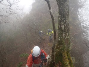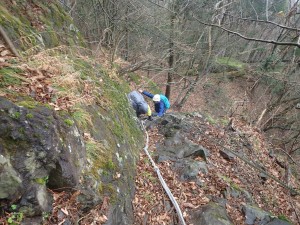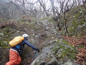 | 木に道標が付けられていた | 岩場を滑らないように | 慎重に登る |