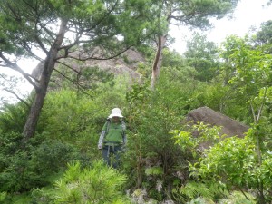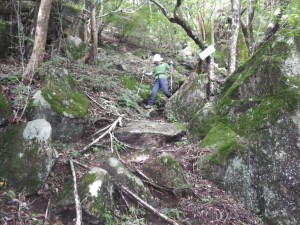 | 急斜面を慎重に | 大きな平らな岩 | 神社との分岐 |