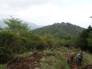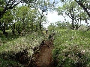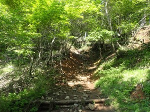 | えぐれた道を行く | 一旦林道に出る(9:40) | 斜め反対側から再び登山道へ |