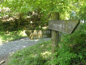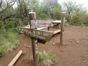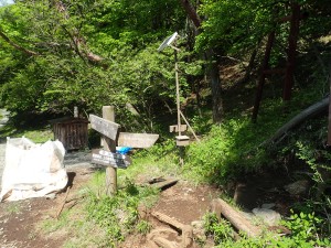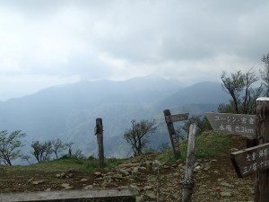 | 西側の展望 | 本日宿泊する尊仏山荘 | 道標がたくさんある |
