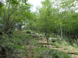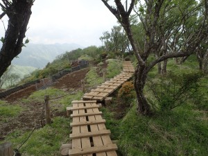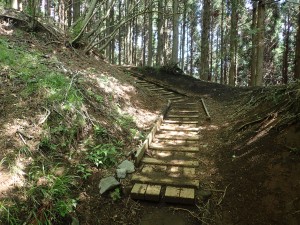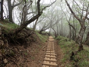 | 自然林の気持ちの良い登山道だ | 木道が整備されている | 太い木だ |
