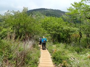 | 鞍部はこんな場所も | 見事! | 木道が続く |