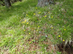 | タチツボスミレ | 階段はきつい | ミツバツツジがちらほら咲いている |