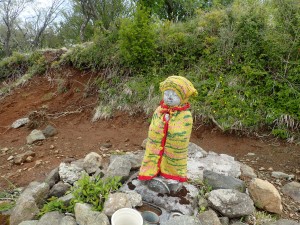 | 左のピークに小屋が見える(烏尾山) | 塔ノ岳3.8kmとある | 可愛いお地蔵さん |