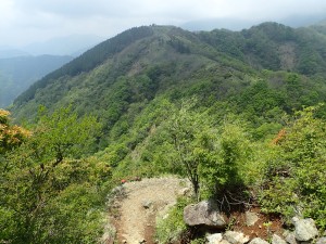 | 鞍部は細くなっている | 西側の展望 | 二ノ塔を振り返る |