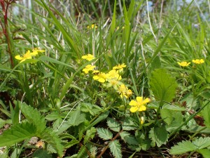 | 黄色い花がたくさん(ミツバツチグリ) | もう少しで山頂 | 三ノ塔頂上(11:04) |