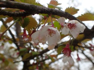 | 木ノ又小屋(13:28) 素泊まり3500円 | マメサクラ(豆桜) | バイケイソウが多くなってきた |