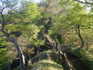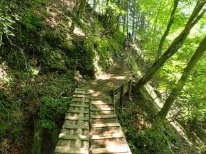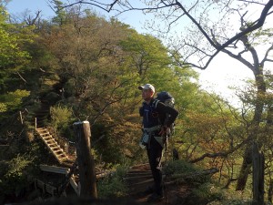 | 林道らしき道に出る | 崩れた場所には梯子が | こんな道が続く |