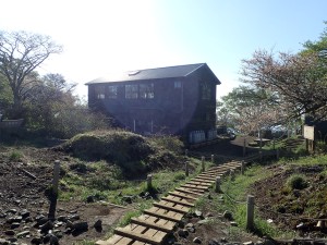| 丹沢山の隣の不動ノ峰 | 桜満開 | 丹沢山頂上にある「みやま山荘」(6:56) |
