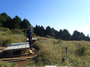 | 振り返ると尖った所が塔ノ岳 | 富士山満喫コースだ | 木道が続く |