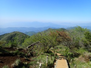 | 奥は蛭ケ岳だろうか? | マメザクラが咲いている | 気持ちの良い稜線歩きだ |