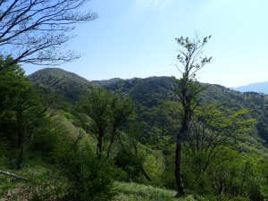 | 塔ノ岳から伸びる尾根 | 新緑がきれいだ | 二俣分岐(9:09) |
